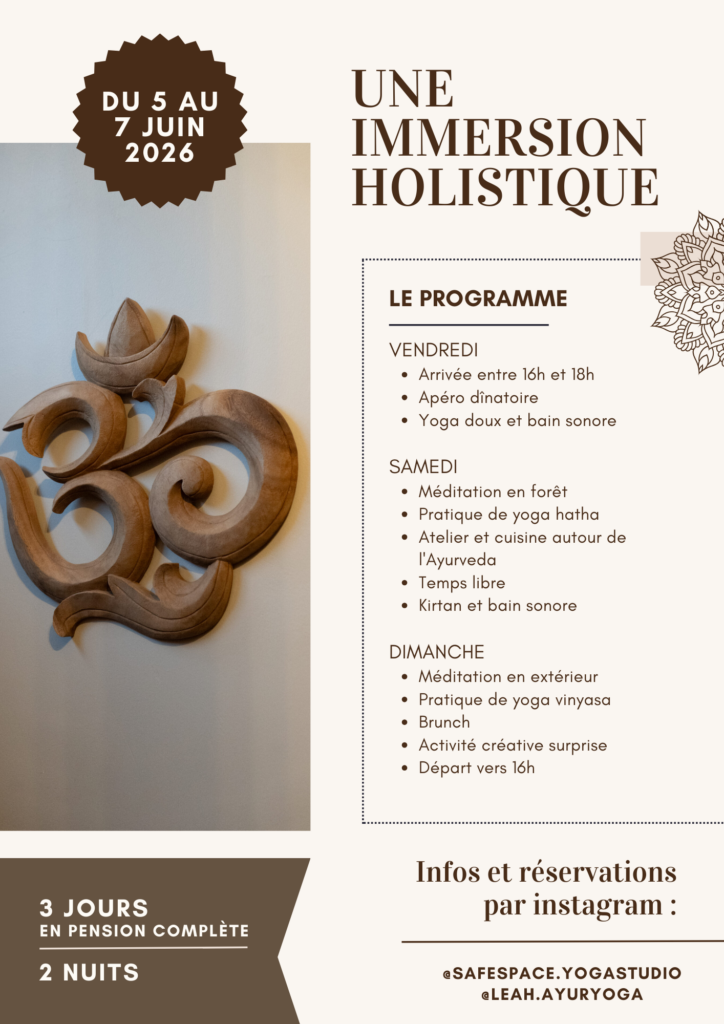 Au fil des jours, nous explorerons un parcours jalonné de pratiques énergisantes et apaisantes, pour nourrir la vitalité, éveiller les sens et retrouver une profonde sérénité.